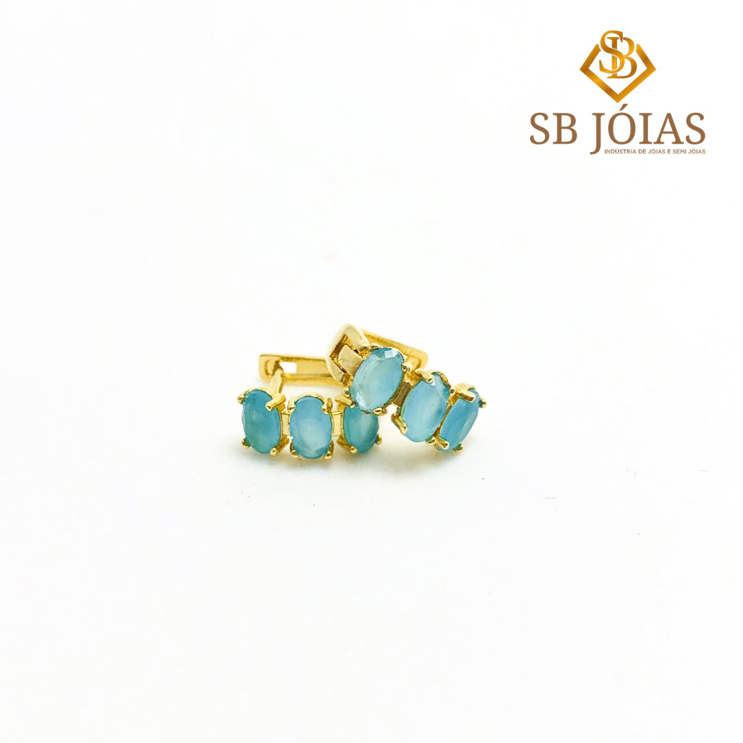 Brincos Argolinha 3 Cristais Folheado a Ouro 18K